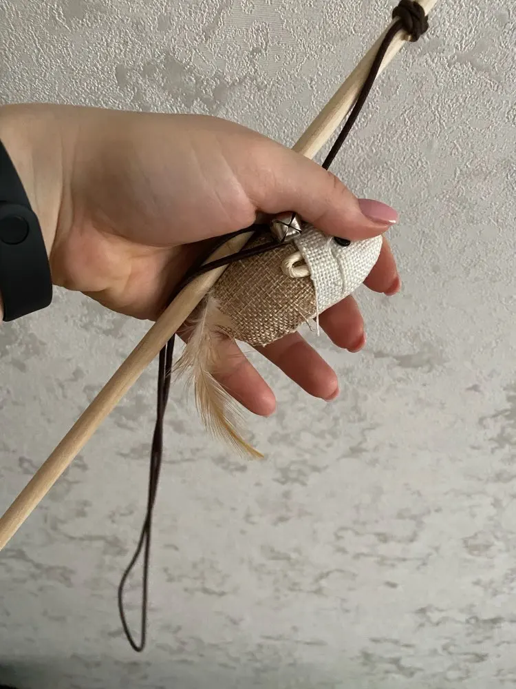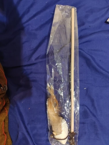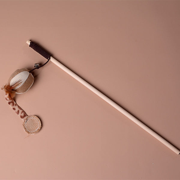This wooden cat teaser wand has cute linen toy and feather attached to a flexible wire for interacting with your kitty. The cat wand is the perfect way to tease and entice your cat to play. Your cat will have tons of fun chasing, pouncing, and biting this kitty teaser toy. Dimensions: 40cm